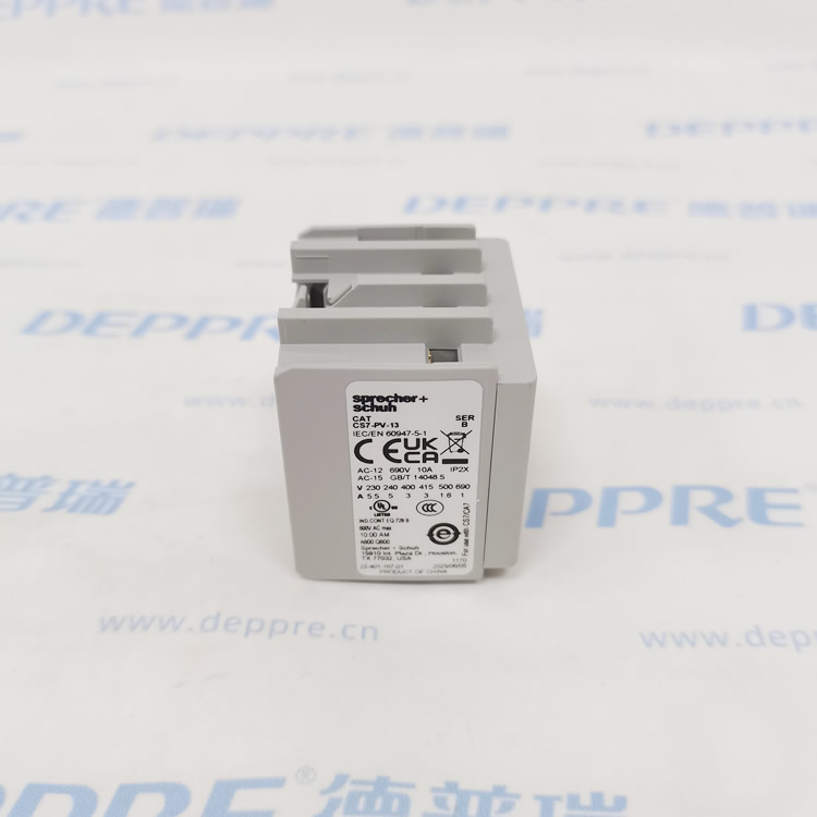 Sprecher+Schuh的CS7-PV-13接觸器隸屬于CS7系列,該系列以先進的設計理念和精湛的制造工藝著稱。此款接觸器具備頂部安裝的特點,設計緊湊,能夠有效節省安裝空間。它擁有1NO-3NC的觸點配置,可滿足多種電路控制需求,實現靈活的電路通斷控制,為電氣系統的穩定運行提供有力支持。